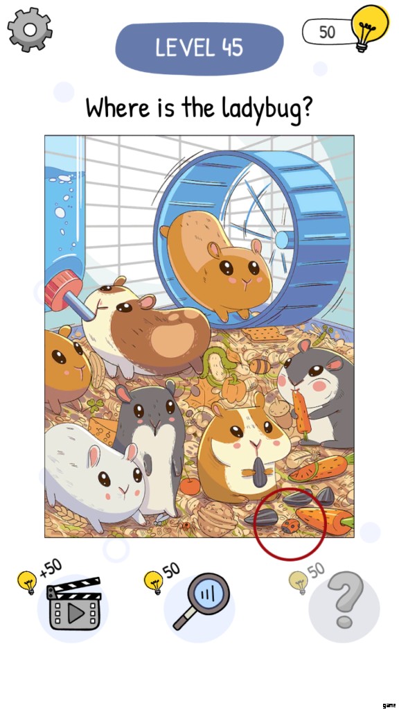 てんとう虫はどこ?次の質問は、ゲームの広告を視聴して集めたポイントを使用して、いつでもどこでも使用できるヒント システムを除いて、手がかりがありません。 ドラッグ 画面の円 、画面の下部にあるてんとう虫の場所でそれを取ります は自由にローミングしています。