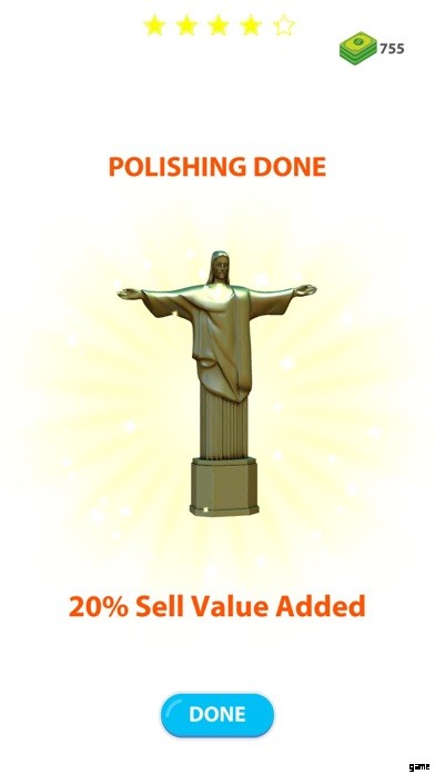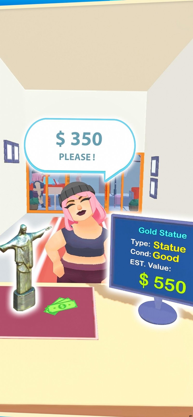 アイテムを購入して磨いた後は、ほとんどのアイテムを棚に保管してください。より高い価格で後で買い手に販売するのを辛抱強く待つ方がよい場合もあります。うまく行けば、より多くの現金を手に入れることができます。ただし、棚はいっぱいになる可能性がありますが、棚を追加購入するか、広告を見て無料で入手できます.これは序盤のゲームで非常に重要になります。
