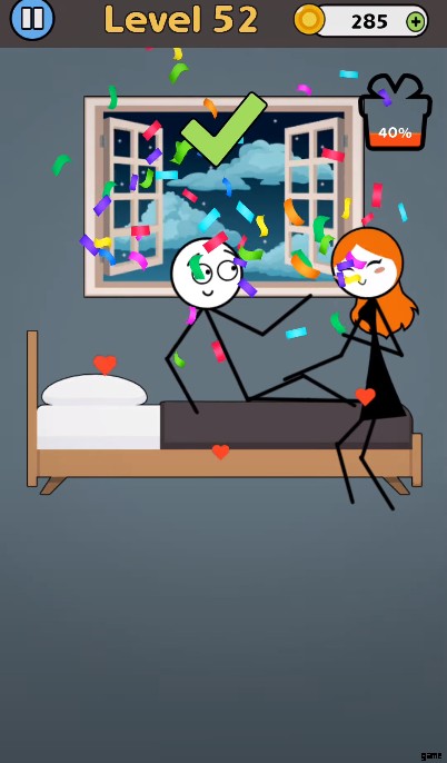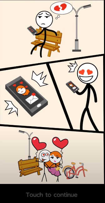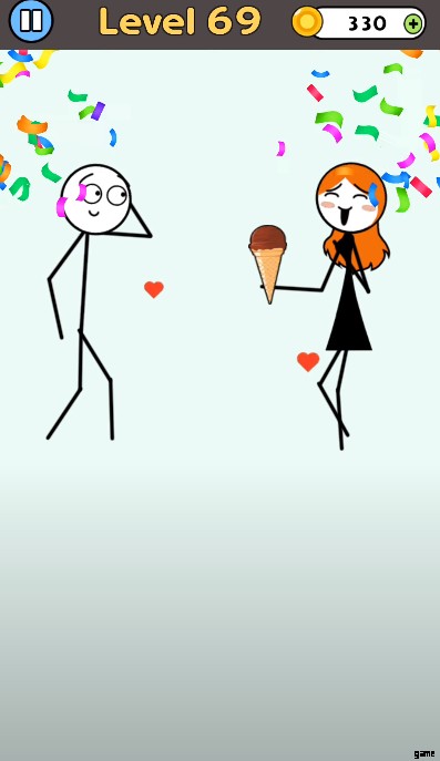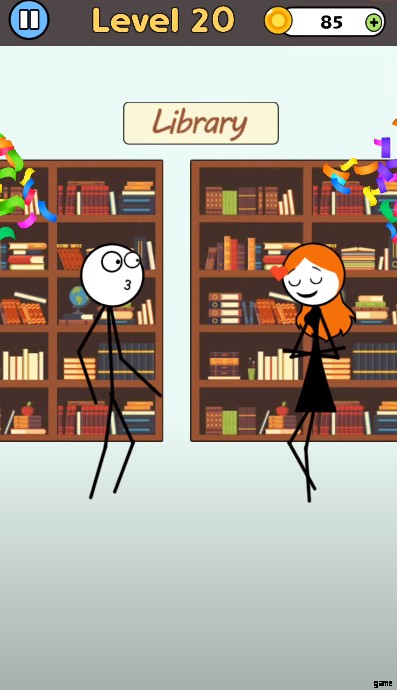 さらに、物語は困っているカップルを中心に展開し、あなたの助けが必要です。各レベルでカップルは、あなたの創造力だけで解決できるユニークな問題に直面します。ゲームでは、キャラクターがバスルームで立ち往生したり、信号機に閉じ込められたりすることがあります。真剣に、ゲームは思ったほど簡単ではありません。要するに、プレイは簡単ですが、ゲームプレイをマスターするのは難しいです。パズルを完成させるには、カップルを救い、ラブストーリーを完成させる必要があります。あなたは愛の時代に生きており、棒人間が女の子を助けるのを発見します。