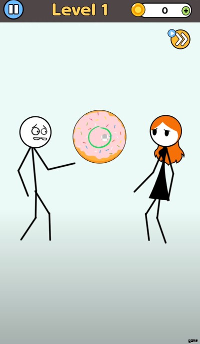 最初のレベルは、すべてがどのように機能するかを教えるチュートリアルです。あなたとあなたのガールフレンドの間にはおいしいドーナツがありますが、何かが欠けています – そう、穴です。ドーナツには穴がありません。最初のレベルを完了するには、その中心からスポットを削除する必要があります。パズルを完了するために必要な特定の領域を消去すると、レベルを完了するのに役立つ場合があります。そうしないと、制限を超えた場合にレベルを再開する必要があります。
