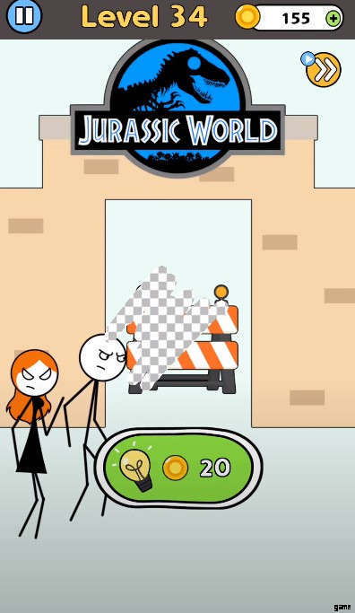 スティックマンは、信号機の横断歩道の近くに立っています。信号機が青信号になり、車両が発車間近になります。しかし、その先には猫がいますので、手遅れになる前に一刻も早く消さなければなりません。そこから猫を消すとパズルが完成し、5 コインが残ります。