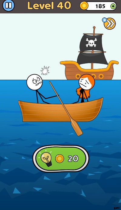もう一度、あなたとあなたの友人は、海のボートの中にいることに気づきます。灯台の解決策を見つけた直後に、別の問題があなたを待っています。今回は、巨大な海賊船がそこにいて、凶悪な生き物が含まれている可能性があるため、問題に対処するのは簡単ではありません.したがって、戦略的にシーンに対処し、両方のキャラクターを救ってラブストーリーを書く必要があります。 海賊の印を取り除いて、悪質な船を普通の船に変えてください。