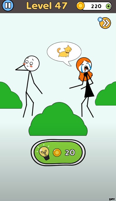 前の 6 つの章で多くのレベルを完了した後、パズルを完成させるためのメカニズムとそれらを使用する方法を理解していただければ幸いです。 The game doesn’t feature a complex system that is hard to understand; you move your finger across the screen to remove the object you want. In this scene, a football has been stuck on a tree, and your girl is asking to bring it out at any cost. Find a solution using your wit to bring it back. Use your erasing power to remove the bushes where football has trapped, and complete the puzzle to win.
