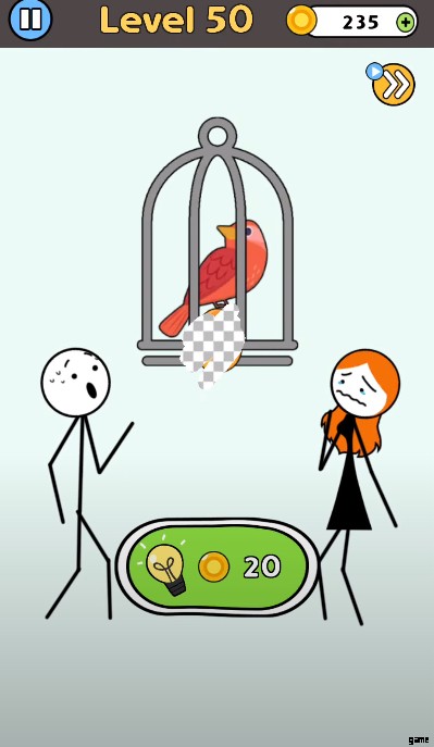 A bird is sitting on a delicious ice-cream, and you just erase the bird to give the ice-cream to the female character to make her happy. As you erase the bird, the ice-cream will be moved to the character’s hand automatically.