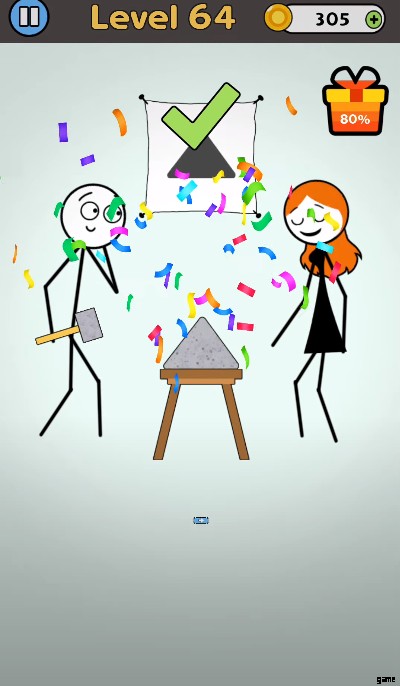 これは、ブロックを所定の形状に変えたレベル 59 に似ています。同じルールに従って、ブロックをピラミッドに似た形状に成形して、女の子を幸せにする必要があります.