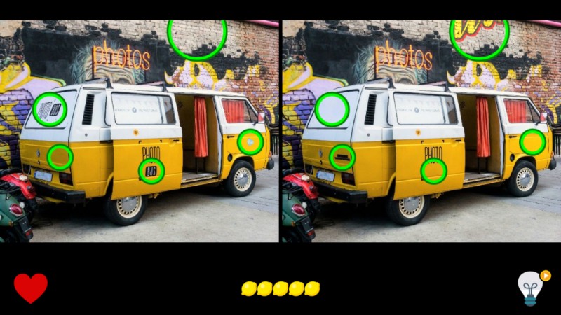 ドアが開いた状態で壁の近くに停車しているスクール バンのイメージがあります。それぞれの新しいレベルには、さまざまなシーンと違いがあります。したがって、環境全体を探索してから、違いを見つけて追加のレベルのロックを解除する必要があります。ゲームには数百のレベルしかありません。それらは千単位であり、すべてのレベルを完了するには数千時間を費やす必要がある場合があります.