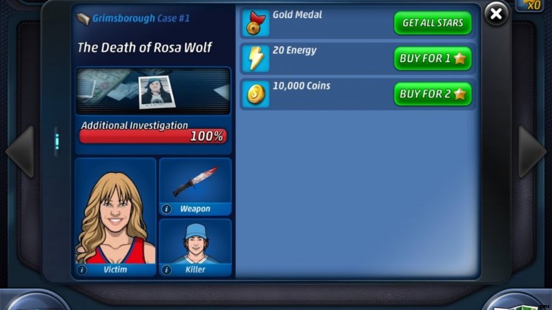 注:追加の調査を行って、ケースをこれまで以上に強力にすることができます。通常、追加の調査により最大 2 つの星が請求され、他のシーンのロックを解除するために星が与えられます。