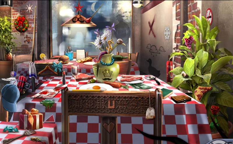 尋問を完了すると、多くの秘密が明らかになります。たとえば、殺人者は頭蓋骨のバッジを着用するのが好きで、左利きです。また、首にはタトゥーが描かれており、髪の色は赤。ケース 2 と同様に、ケース 3 には探索する場所が 6 つあります。パズルを解こうとすると、それぞれにさまざまな隠しオブジェクトがあります。場所の名前は次のとおりです: