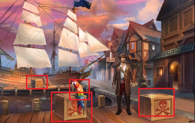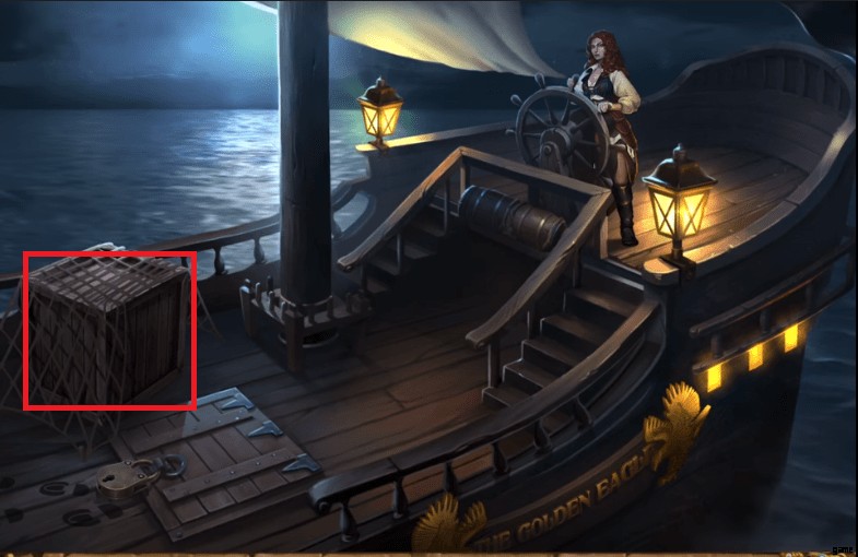 You destroyed Kathy’s ship with the help of the tentacle beast. Now, you must help out Conroy to manipulate its lair to discover an escape path. The said thing will happen in Pirate’s Treasure Chapter 6, and we will help you figure out how to do it with the help of a walkthrough . The opening scene displays lots of boxes and two characters behind them.