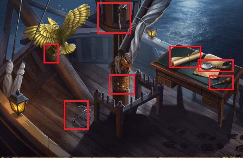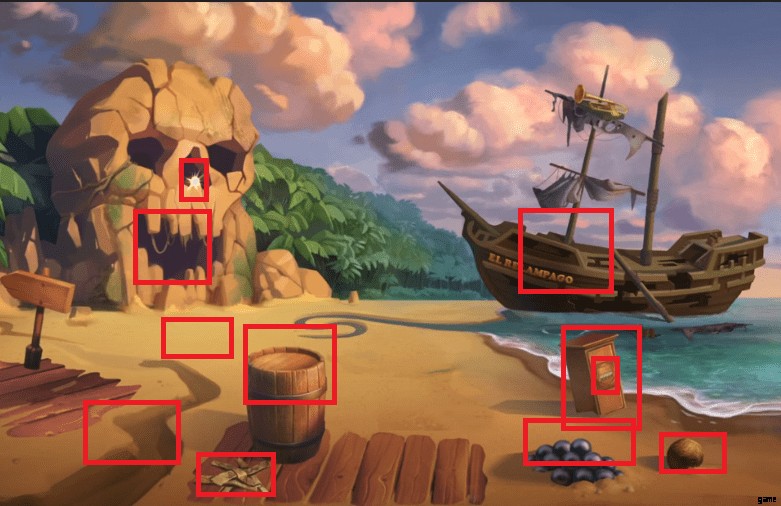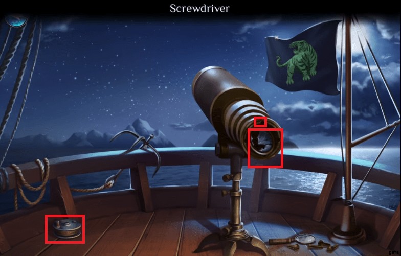 さらに、すべての章は、船の森が急速に腐っていることについて話し合う、両方のキャラクター間の会話から始まります.光る物を見つけたら、困った時のヒントになるので忘れずに集めましょう。 Pirate's Treasure Walkthrough に記載されている手順に従ってください :