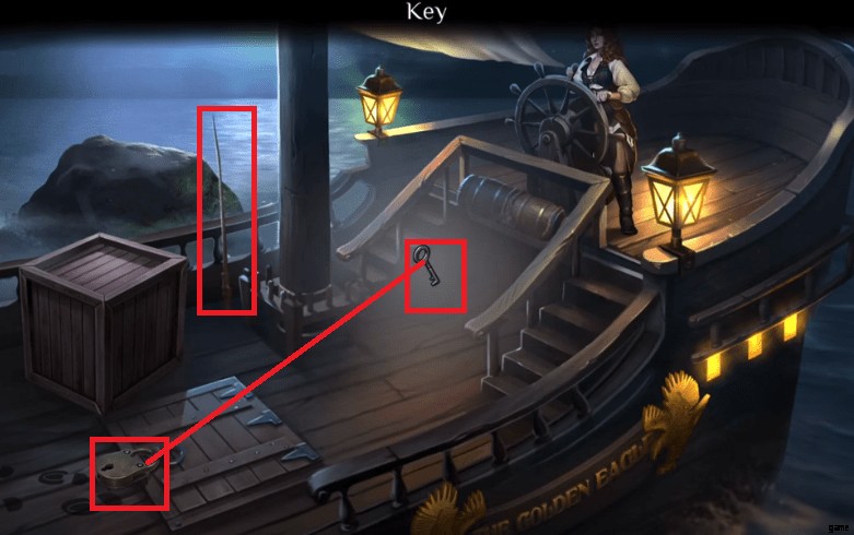 - Grab the key and visit the area where you have played a mini-game using gears. Use the key to open the locker of the ship and collect a ladder.