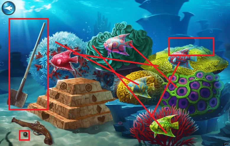 - 次のステップでは、最終的な目標は、デザインに従って魚を関連する海の植物に近づけることです。パズルを完成させると、何かが明らかになります。