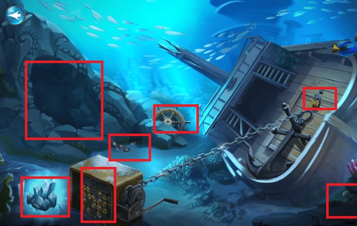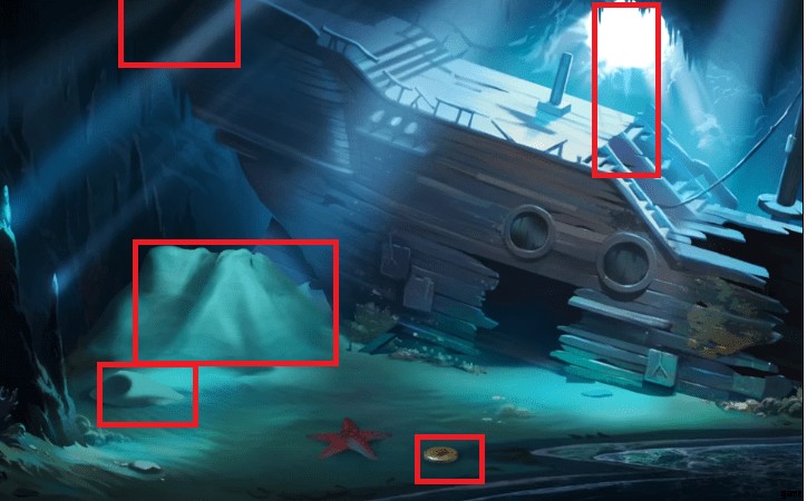 - Collect a coin and crystals from the bottom. Tap the starfish to let it reveal a gear that you must collect and add to your inventory.