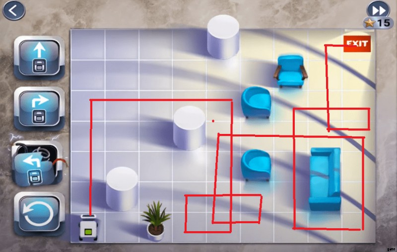 その隣に、ゲームはミニゲームを表示し、コントロールが壊れている車両を見つけることができます.車両は前方向または右方向にのみ移動できます。左ボタンが壊れており、修理不能です。したがって、トロリーを制御し、出口点に到達するには、機知を使用する必要があります。以下の画像に従って、問題なく最後までたどり着くことができます。