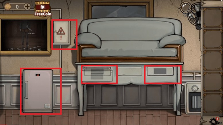 - インベントリの鍵を使用して、テーブルに置かれたソファの左側にある回路ボックスを開きます。 リモコンを集める そこから AC をオンにしますが、まず、右側のメイン ドアの近くに固定されているソケットにすべてのスイッチを接続する必要があります。