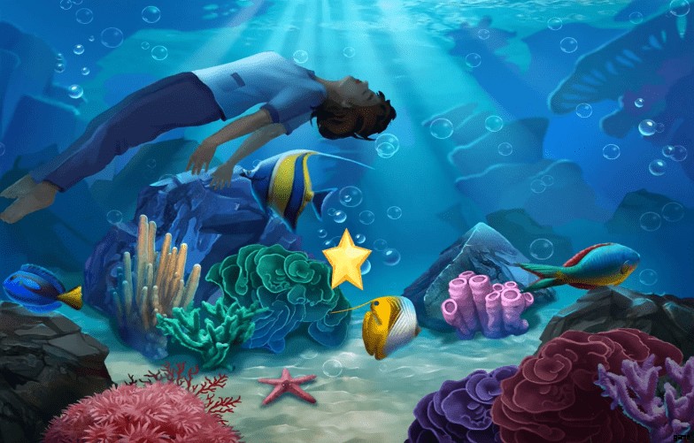 ガイドとシュノーケルを入手したら、水中に飛び込み、ガイドに記載されている指示に従って水中世界を探索してください。あなたに害を及ぼす可能性のある魚に触れたり、追いかけたりしないように、指示に正しく従ってください。すぐに、メリッサは別の死体が水に浮かんでいるのを見つけます。どちらも、死体が家政婦のナンシーのものであることを認識していました .