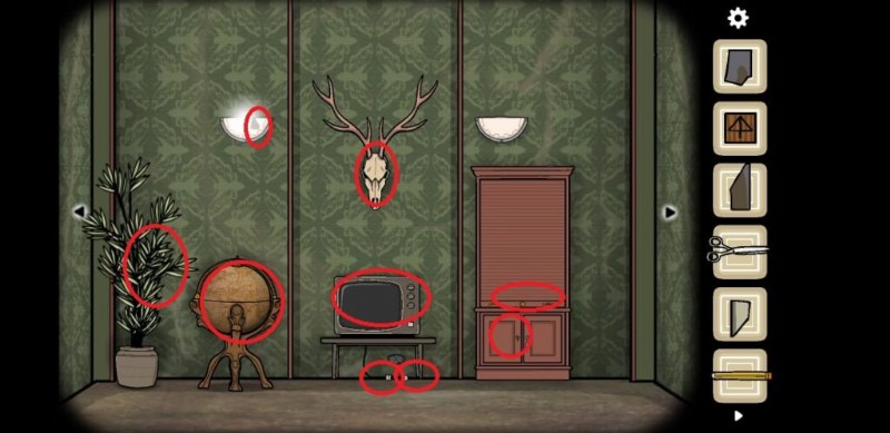 - テレビの上にある動物の頭をクリックし、2 つ目のガラスの目を追加して邪悪なエネルギーを解放します。