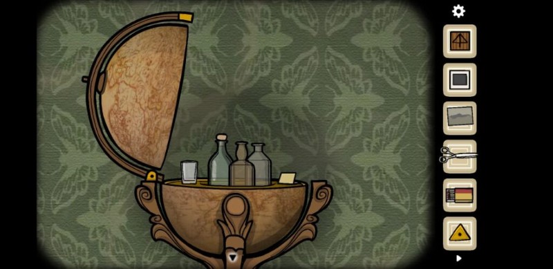もう一度、メガネを見つけた世界地図スタンドに向かいます。それらのグラスをタップして、機知に富んだ 3 番目のボトルからグラスの目を取り出してみてください。 グラスアイの持ち方の解決策はこちら ボトルから Cube Escape Paradox ウォークスルー ガイドに従ってください: