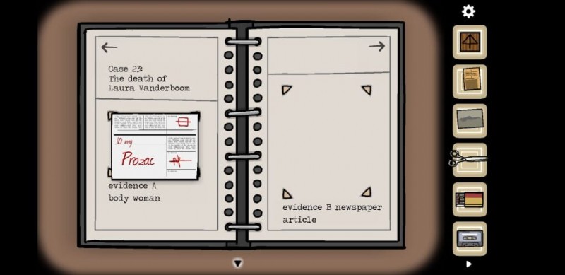 - 証拠のファイルが保管されている上部のセクションをタップして開き、手がかりを明らかにします。