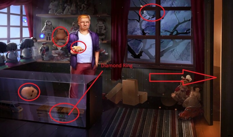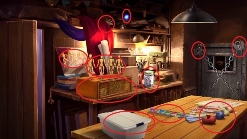 第 3 章の完了 (ミッドナイト カーニバル 第 3 章) ) は、ジャックが部屋に入った後に人形を発見し、厳しい警察の仕事のために良い叔父ではないことを明らかにするところから物語が始まる新しいシーンに連れて行ってくれます。しばらく放置すると、部屋の向こう側から輝く星が集まり始めます。ゲームは青い星を瓶に追加しますが、他の星はヒントを得るのに役立ちます.