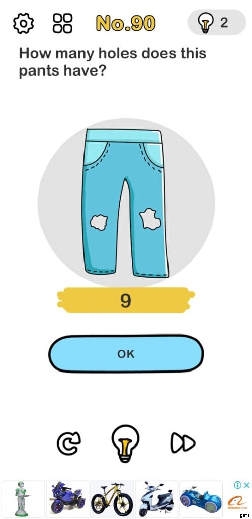 パンツに穴がいくつあるか気づいた?確かに、あなたの答えは大したことではないでしょう。したがって、Brain Out レベル 90 パズルを解くためのガイドが必要です。