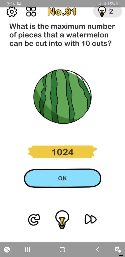 このゲームではスイカが表示され、10 カットした後のスイカのピース数を知ることができます。これはトリッキーな質問で、誰も答えられません Brain Out レベル 91 の質問 簡単に。