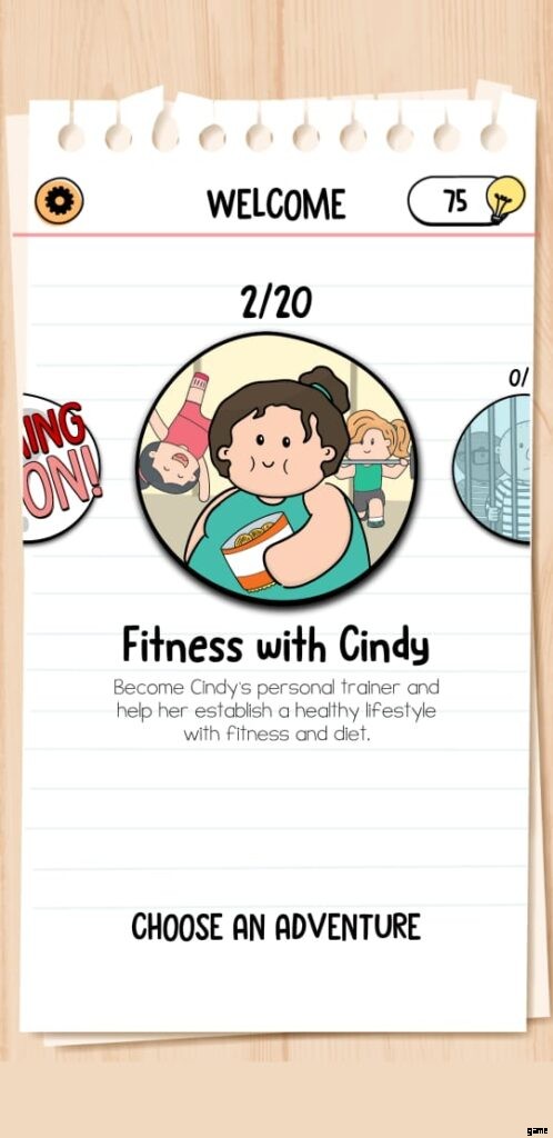 第一章 Brain Test 2 の 体重を減らすためにトレーナーが必要なシンディを中心に展開しています。つまり、シンディは、パーソナル トレーナーが提案できる完璧なフィットネスと食事で健康的なライフスタイルを楽しむ方法を探しています。したがって、シンディのパーソナル ヘルス トレーナーになる機会を得るために、あなたがしていることはすべて任せてください。