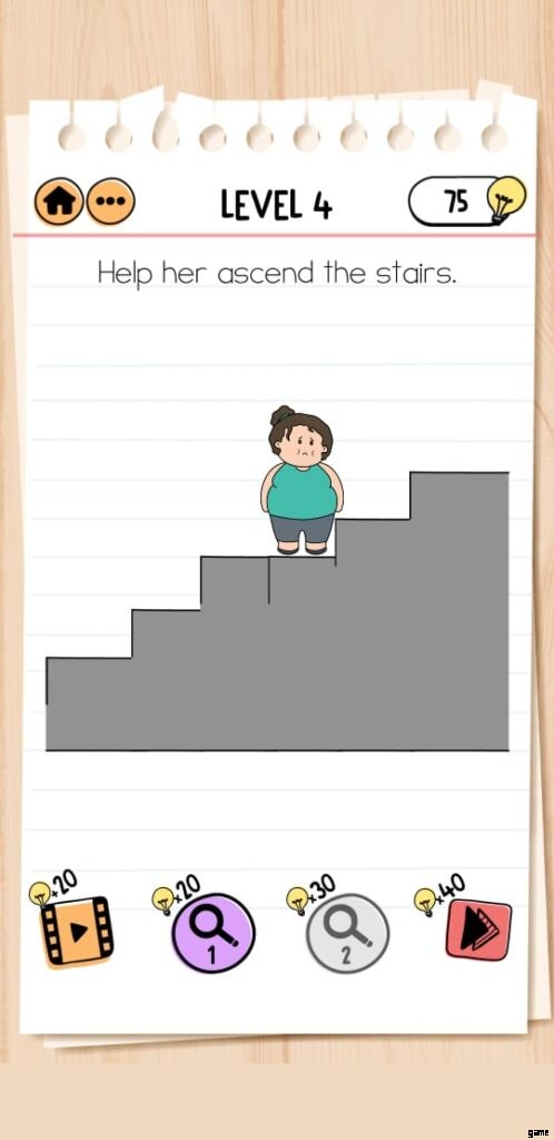 真剣に、私が高レベルにアプローチするにつれて、ゲームは徐々に難易度を上げていきます。今回の最終目標は、Cindy が Brain Test 2 レベル 4 の階段を上るのを助けることです。