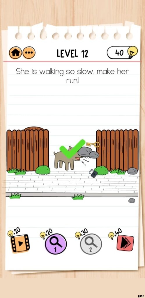 - 解決策 :石をドラッグして鍵を探し出し、鍵を開けると、シンディに吠える犬が現れます。