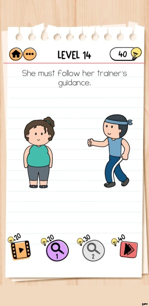 シンディを訓練しに来るトレーナーはあなただけではありません。別のトレーナーがいます。 Fitness with Cindy レベル 14 の目標は、シンディがトレーナーの指示に従うのを助けることです。トレーナーは上下に強打することがあります。それがどのように機能するかを学ぶために、あなたはシンディが理解できるように手助けしなければなりません。