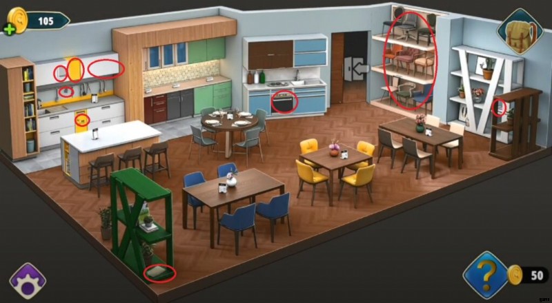今、あなたは誰も出迎えてくれないキッチンにいます。したがって、ドアを開けて脱出するための鍵を見つけながら、隠されたオブジェクトを見つけることに集中してください。開発者は部屋の設計において素晴らしい仕事をしました。したがって、見栄えがします。部屋にはメインドアに戻るためのドアがあり、テーブル、ラック、その他のものがたくさんあります。