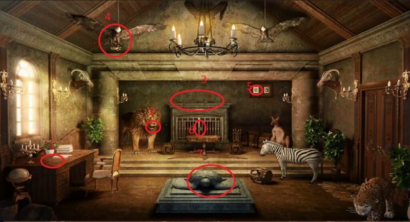 シマウマ、ライオンなどの動物がたくさんいる部屋にいます。動物は動くことができませんが、隠れた物を探すときは距離を保つ必要があります。オブジェクトをクリックしてズームインし、可能であればアイテムを検索します。それ以外の場合は、戻るボタンをクリックするだけでその領域を離れます。詳細については、100 ルーム 13 ウォークスルー ガイドを脱出できますかを読み続けてください :