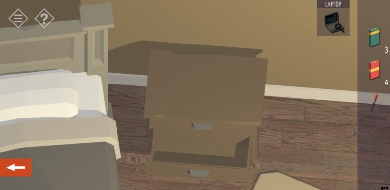 ワードローブの右側には、インベントリのキーを使用して開くことができるドアがあります。部屋には食器棚、バケツ、ベッドがあります。ストーリーを進めるには、手がかりと隠されたオブジェクトを見つけるために調査を開始する必要があります。