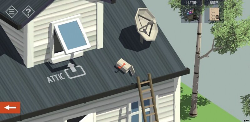 - 廊下と家から出て、はしごを登り、バールを使って窓を開けて屋根裏部屋に入ります。