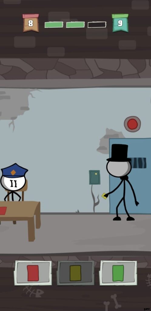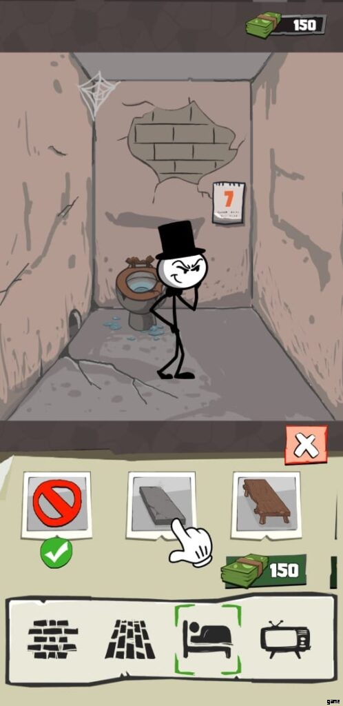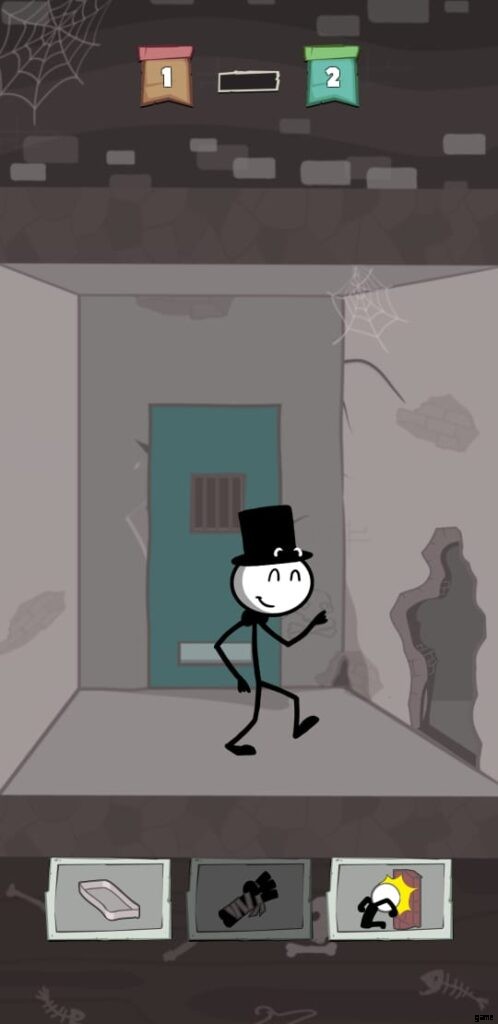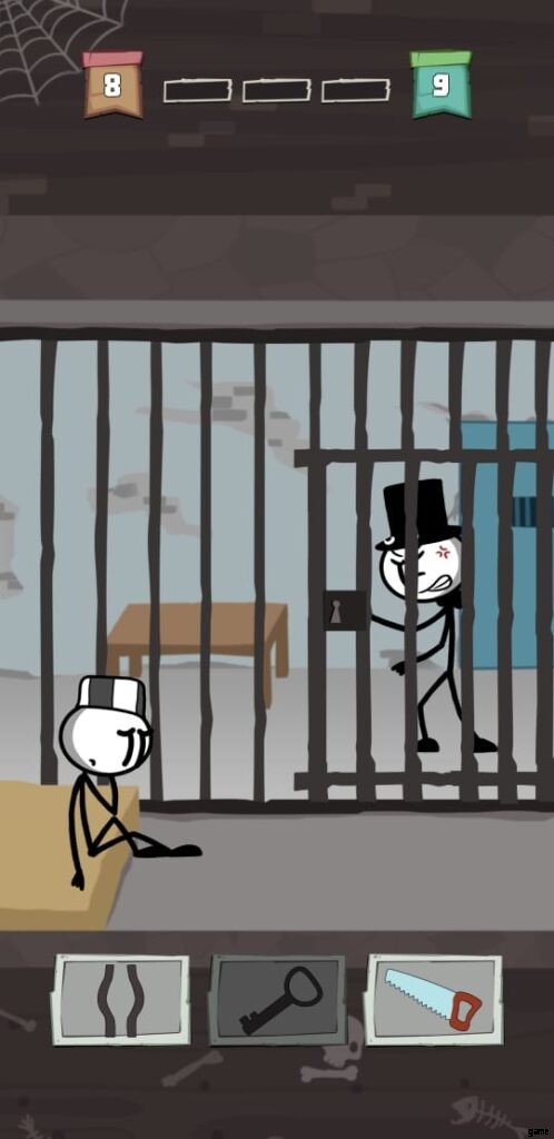 Prison Escape は、アメリカで銀行強盗をして現行犯逮捕された登場人物から始まります。ルパンの残り時間はあと 10 日しかないため、刑務所から脱出するにはあなたの助けが必要です。ゲームが始まると、ルパンが壁を壊して逃げようとしている小さな独房に一人でいます。彼が気づかれずに簡単に壁を壊して逃げることができるように、彼が適切なツールを選択するのを手伝わなければなりません。賢明な選択をする可能性は非常に低いです。そのため、Prison Escape:Stickman Story Walkthrough をお届けします。