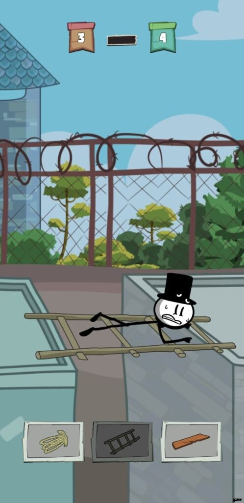 After reaching the last round of Prison Escape Level 10, your character is hidden behind the bushes because a police officer is standing a few steps away from him with a gun. Now, your goal is to distract his attention using one of three possible items: