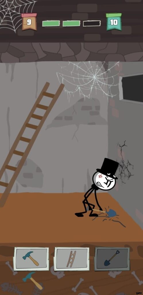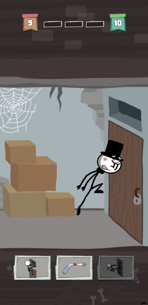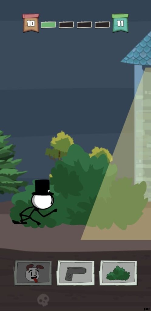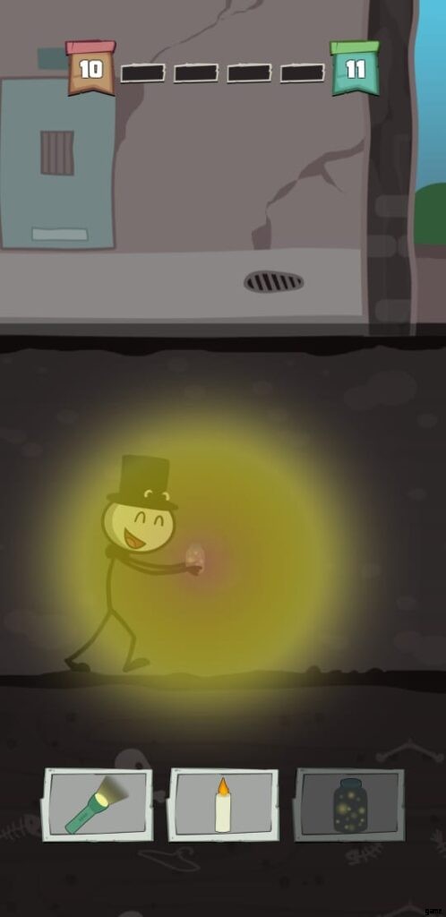 Prison Escape:Stickman Story Level 10 has four rounds. The number of rounds is increasing with upcoming levels. Here you have four different items to light up the area, such as: