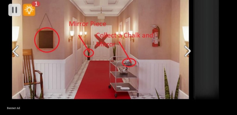 4 番目のレベルはどこかのホテルで行われ、フード トロリーと閉まっているドアを発見できます。他の探索ゲームのように移動することはできませんが、特定のエリアをタップすると新しい部屋に移動します。隠しオブジェクトを見つけるときは、あらゆる側面に注意してください。