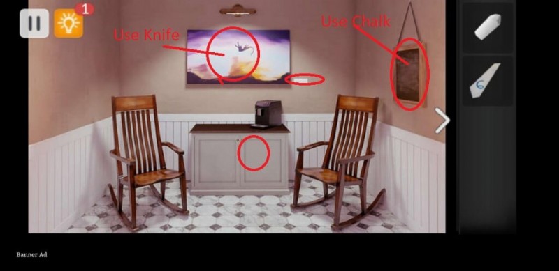 上記のアイテムをすべて集めたら、矢印をクリックするだけで左矢印に移動する必要があります。クリックすると、ゲームは別の部屋に移動し、そこには 2 つの椅子、テレビ、その他のものがあります。