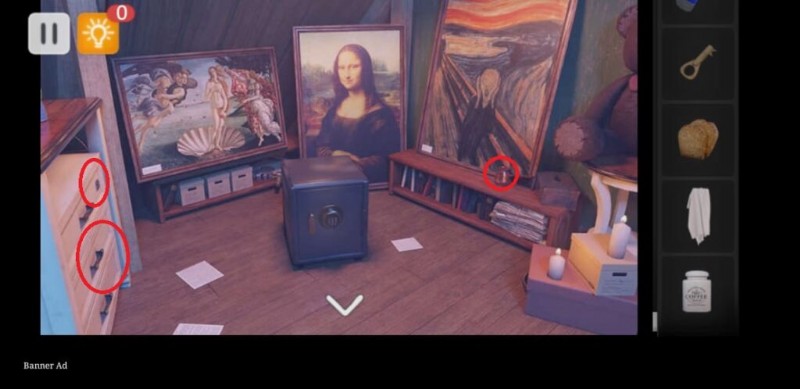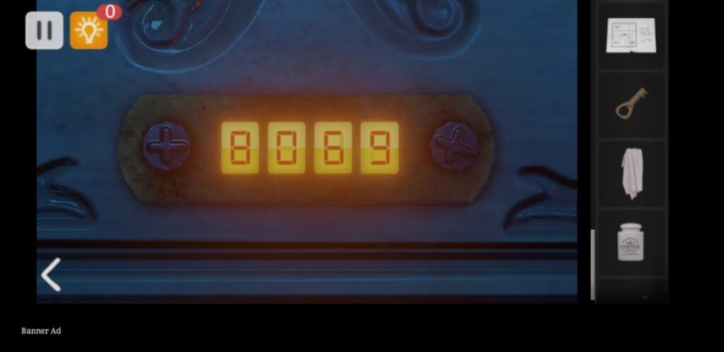 - ソファの左側には宝箱があります。ボックスをタップし、次のパスコードを入力して開きます (8069) )。宝箱からハンマーを集めてください。