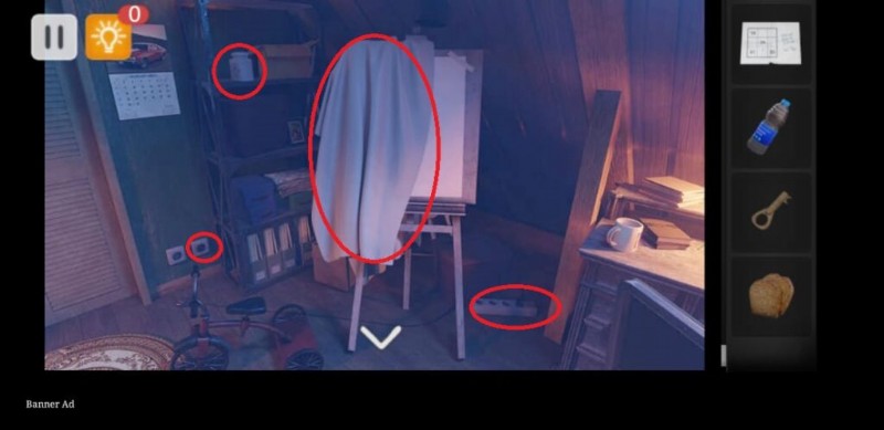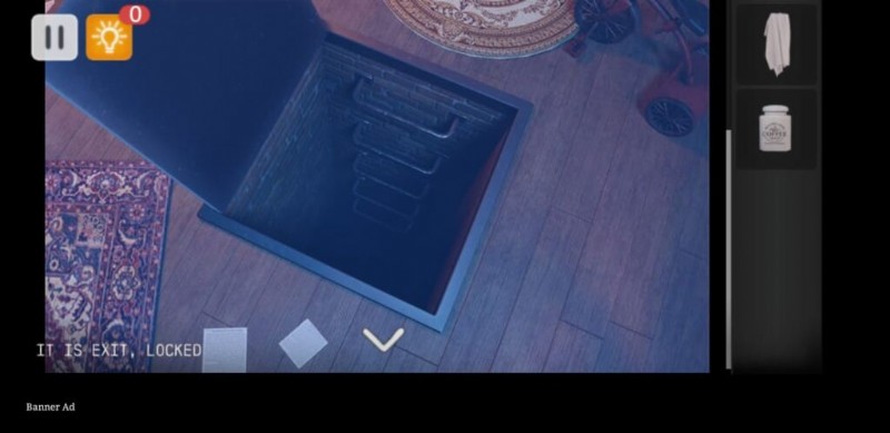 - 持ち物から鍵を選択してドアのように見える戸棚を開き、それを通り抜けて隠されたオブジェクトを見つけます。