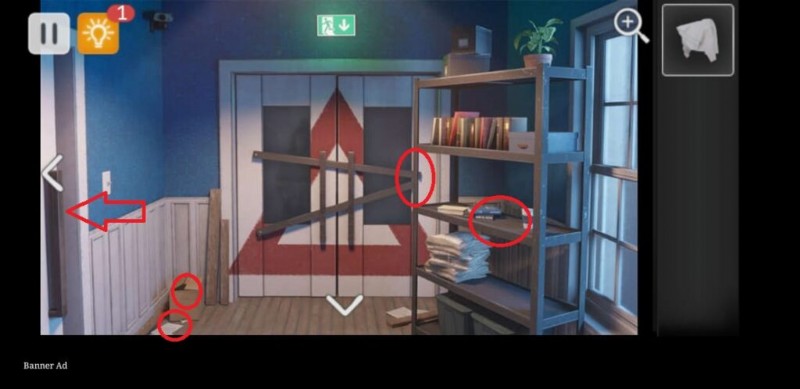 上記のアイテムをすべて集めたら、ドアに向かい、在庫の消火器を使用して鏡を壊してください。