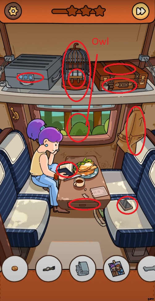 探し出す:何かと隠しオブジェクトを探すには、新しいチャプターとレベルが継続的に導入されています。 3 つの異なるモードがあり、それぞれが解決するためのトリッキーなパズルを提供しています。最初のものは、隠されたオブジェクトを見つけるだけでなく、それらを利用してパズルを解くように求めます。レベル 18 は、女性が本を読んでいるときに座席に座っている電車の中で行われます。探偵スキルを使って隠されたアイテムを見つけ出し、ミステリーを解いてそこで何が起こったのかを突き止めましょう。列車には、ハンギング コート、オウムのケージ、ブリーフケース 2 つ、テーブルなど、いくつかのものが含まれています。レベルを完了するには、レベル 18 のチュートリアルを見つけるに記載されている手順に従う必要があります。 .