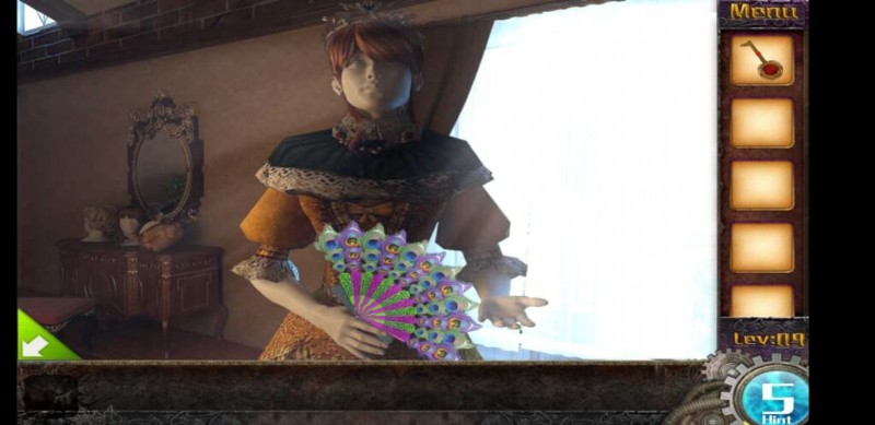 - 食器棚をタップして引き出しを開き、羽を集めます。食器棚の右側に飾られた絵に特徴を追加し、適切に設定して鍵を入手してください。