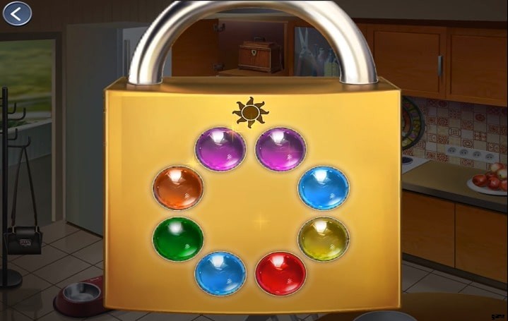 - 盆地の上で、 戸棚があります それはロックされています。ロックを解除する方法を見つける必要があります。わからない場合は、指定された色を反時計回りに設定してください:紫、オレンジ、緑、青、赤、黄、青、 そして紫。 ドアが開いたら、ヘッジクリッパーを集めます そこから在庫に追加してください。