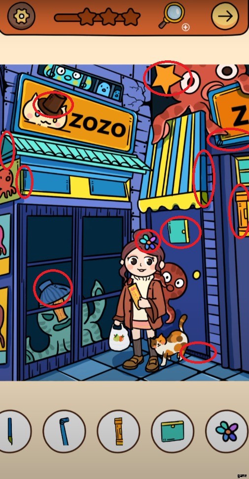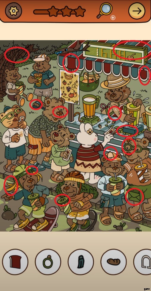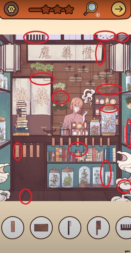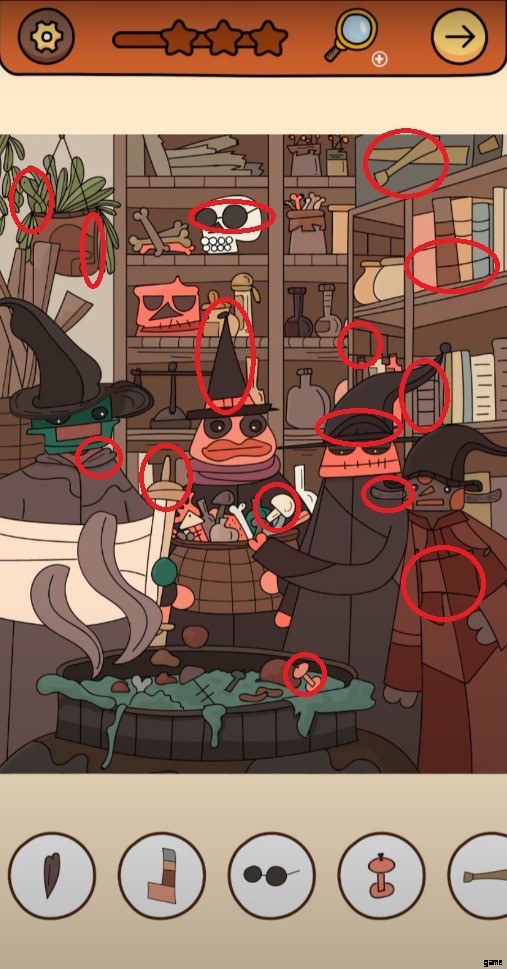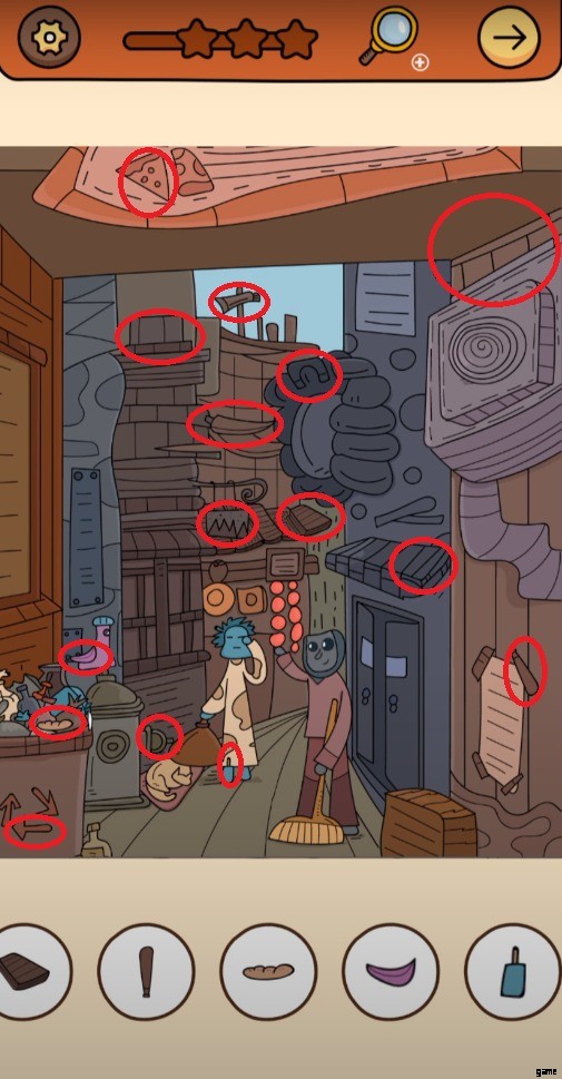 Find Out Chapter 3 レベル 5 に到達した後、4 つのユニークな生き物が身振り手振りをしている奇妙な店にいることに気が付きます。ゲームにはグラフィカルなシーンはありませんが、経験に基づいて推測できます。今回は、ゲームから 15 個の隠しオブジェクト アイテムを見つけるよう求められます。