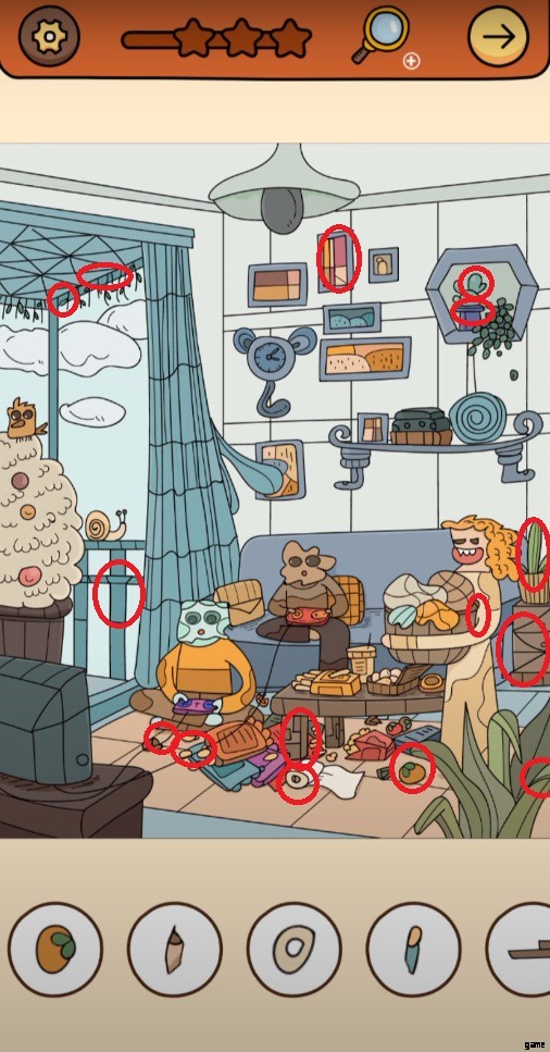 チャプター 3 のすべてのレベルは、前の 2 つのチャプターとは完全に異なります。ゲームはキャラクターだけでなく、環境も繰り返します。したがって、次のステージを楽しむ必要があります。続きを読む 第 3 章のウォークスルーを確認 隠されたオブジェクトが強調表示された画像を表示します。