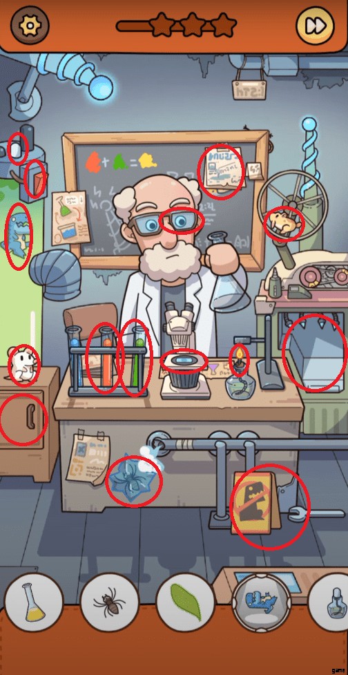 クレイジーな科学者がラボであなたを待っています。あなたの仕事は、時間のプレッシャーなしに隠されたオブジェクトを見つけることです.