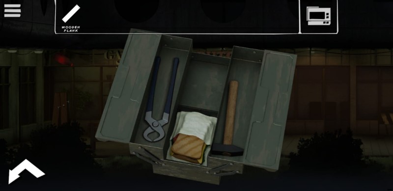 - 箱を開けて次のアイテムを集めましょう:サンドイッチ 、はさみ 、ハンマー .