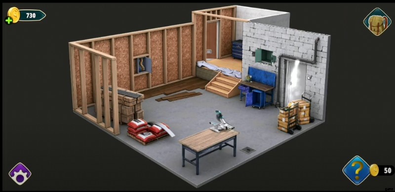 ドアを横切ると、ゲームは追加のものでいっぱいの別の部屋を表示します。ここでは、パズルを解くために使用できるはしごやその他のアイテムを見つけることができます。
